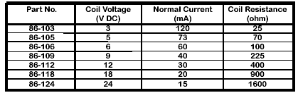 NOTE: Packaged Only, Not Available in Bulk. •Power Consumption – 0.36W •Pull-in